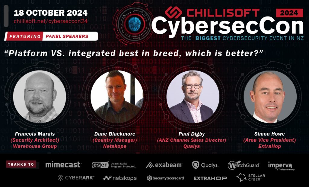 Featuring: Francois Marais (Warehouse Group) Security Architect, Dane Blackmore (Netskope, Country Manager), Paul Digby (Qualys, ANZ Channel Sales Director), Simon Howe (ExtraHop, Area Vice President)